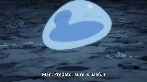 — Back in the cave, Rimuru still hasn’t found is way out just yet. Instead, we get to watch him gain new skills. This is so goddamn exciting, you guys. Instead of watching interesting characterization, I’m watching a slime learn how to use water as a weapon and killing a giant serpent.