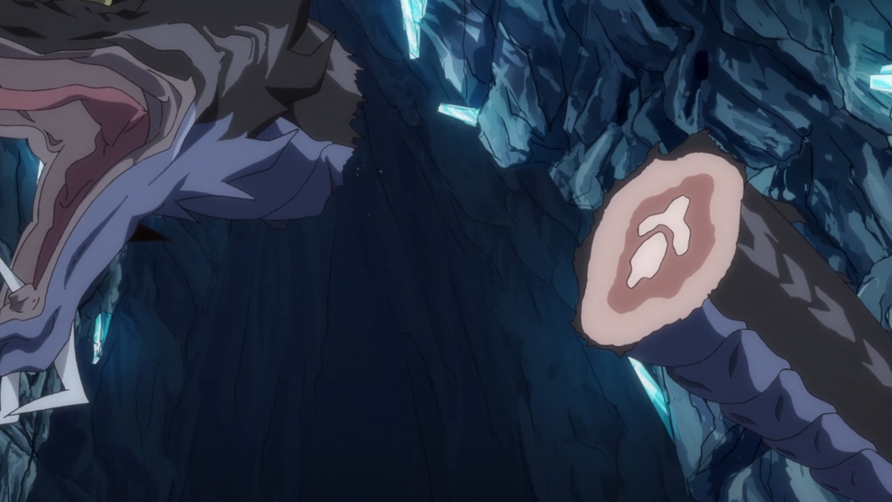 — Back in the cave, Rimuru still hasn’t found is way out just yet. Instead, we get to watch him gain new skills. This is so goddamn exciting, you guys. Instead of watching interesting characterization, I’m watching a slime learn how to use water as a weapon and killing a giant serpent.