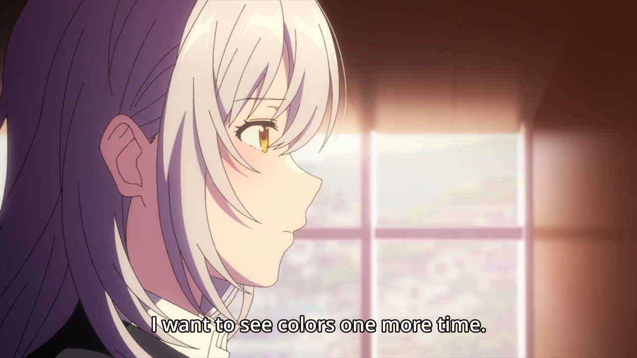 — The show continues to have a sleepy, languid pacing, but I kinda like it. It’s calming in its own way. Plus, I’m really curious about Hitomi’s past and how she came to lose her ability to see colors in the world.