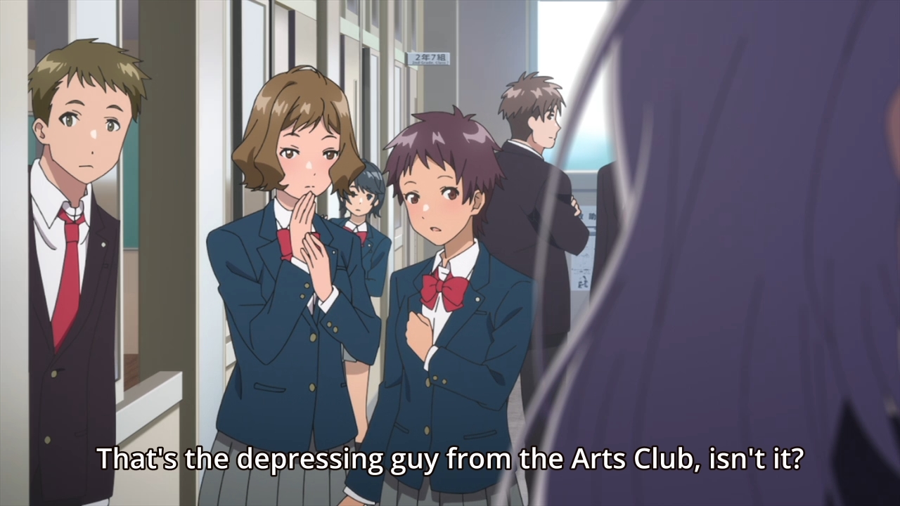 — Unfortunately, Yuito seems uncomfortable, so he starts leaving immediately. As a result, he doesn’t offer to show Hitomi another glimpse of his drawing, and she’s too shy and passive to say anything. The girl has a long way to go if she’s to come out of her shell.