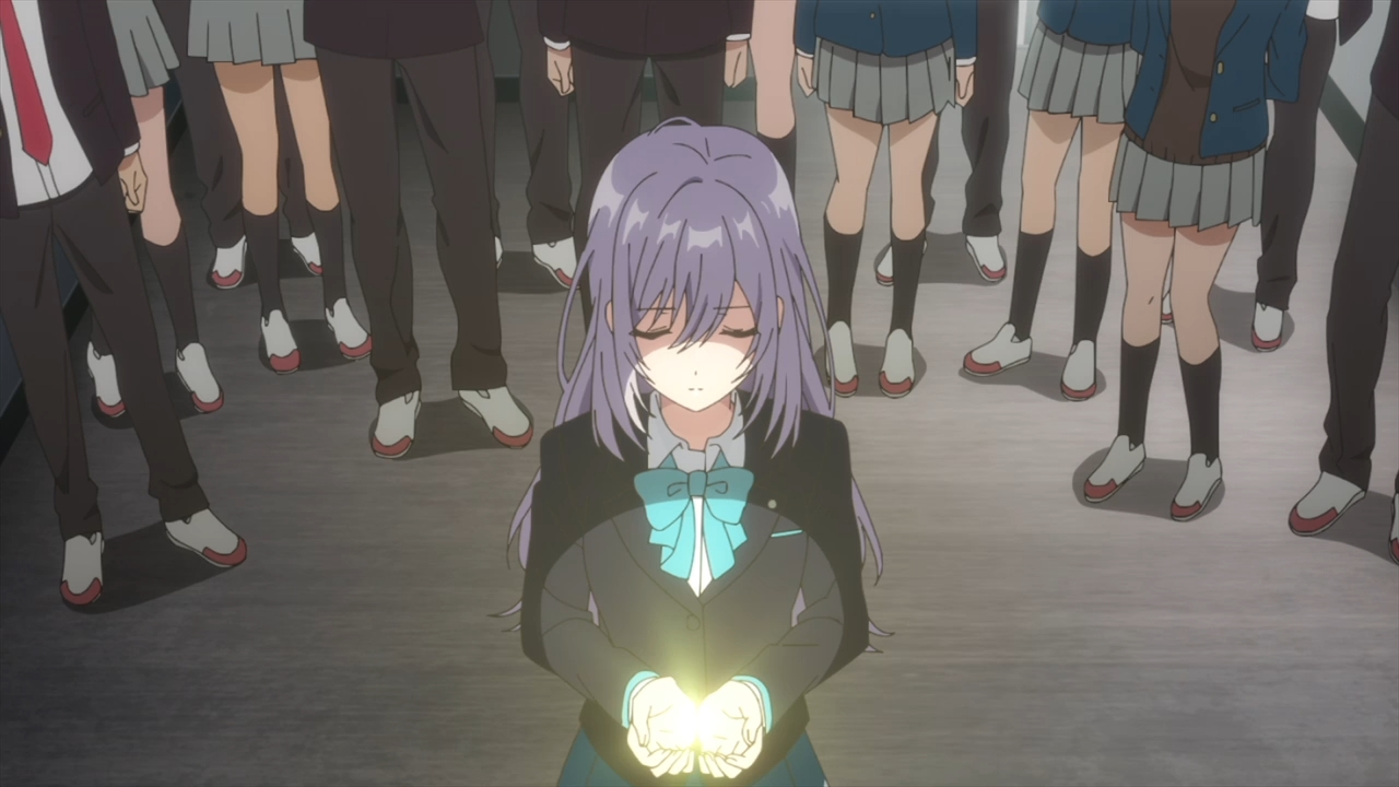 — All the girl can do at the moment is this tiny, shimmering light. I guess it’s like baby’s first magic spell or something. Everyone’s disappointed, and Yuito is almost left speechless. Hitomi thus can’t help but run away in embarrassment. Yeah, I mean, if you’re depressed, the last thing you wanna do is humiliate yourself in front of everyone. To make matters worse, it’s her first day of school.