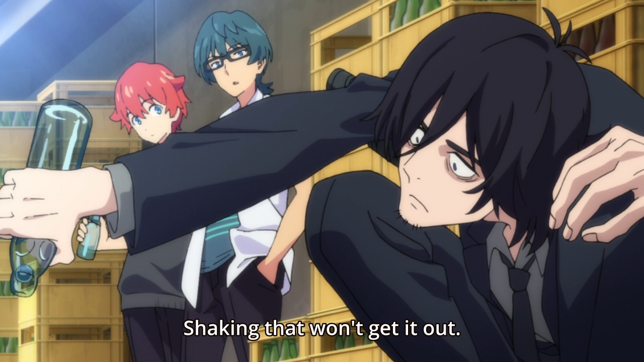 — I do also appreciate the fact that the girl is playing the straight (wo)man. Yuta is an amnesiac, so he just goes with the flow. Sho seems like a mega-geek, so he’s super-excited to plunge into this scenario with gusto. As a result, the odd man out is Rikka. She is left being the normal kid. She’s doing her best to adapt to what is essentially an anime plot.