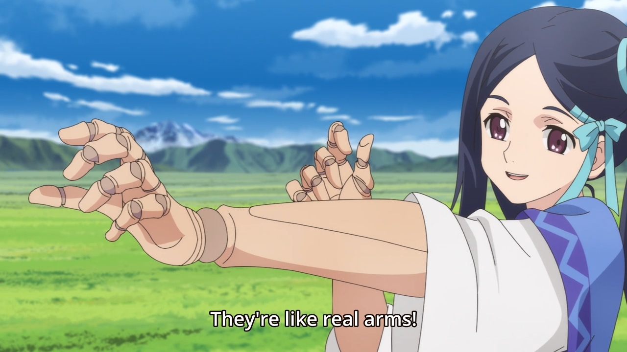 So what happened this week? Imouto got working prosthetic arms! According to Yun, they can move thanks to magnetism. Sure. The best part is that the girl’s new arms also come equipped with blades, so now Imouto can help Yin in battle! Unfortunately, the Empire immediately sent reinforcements to destroy the very same village that Yin had saved in the first episode. Well, y’know what they say: when at first you don’t succeed, try, try again! And boy, did they succeed the second time! Some poor kid got her head chopped off for no reason other than the fact that (again) might makes right! Even though Yin seems reluctant to kill the bad guy, poor Imouto is so traumatized that she ends up finishing the job for her big sister. Yeesh. So a subplot to track from here on out is Ning’s loss of innocence.