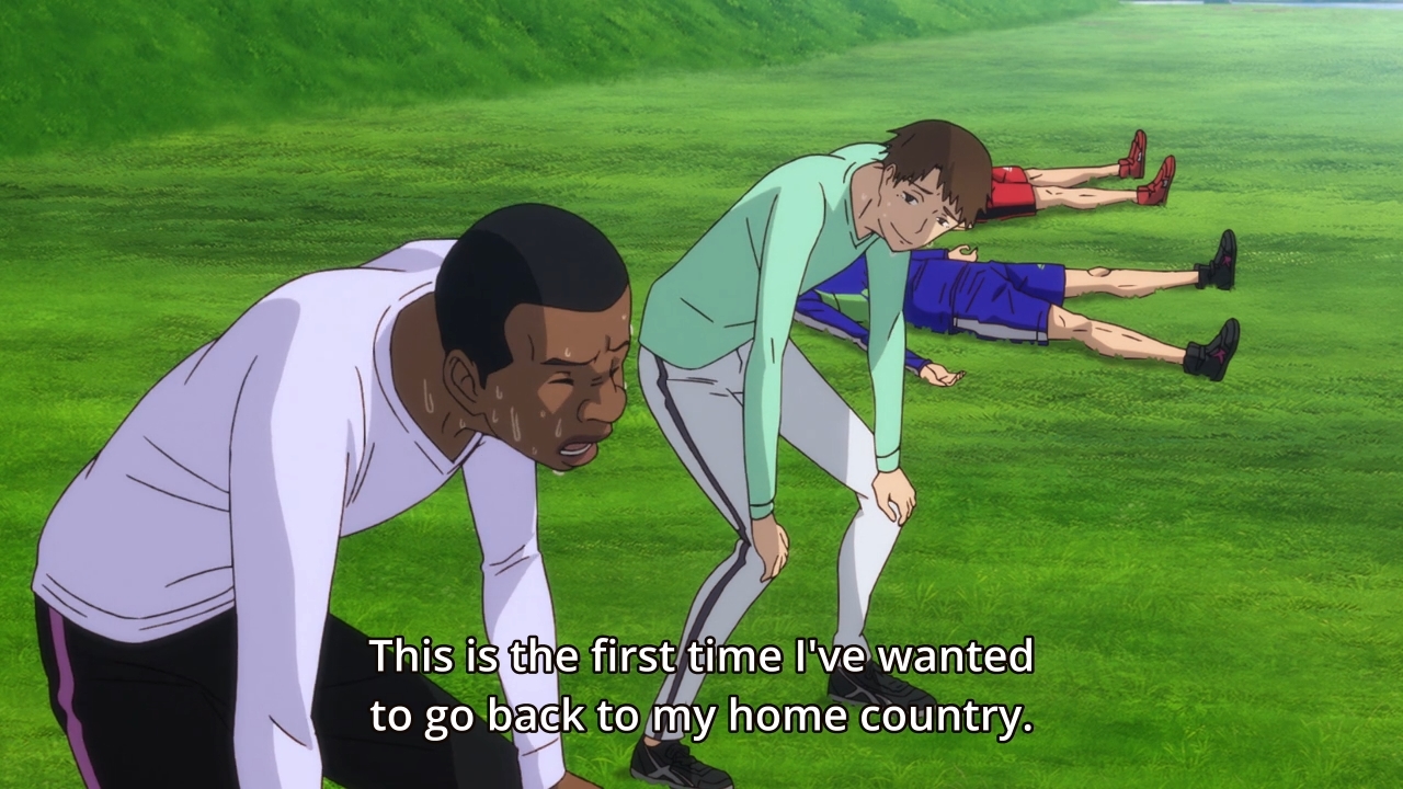 — On the fourth day, Kakeru has already gone ahead and started running without the group. This thus allows him to bump into someone from his past, i.e. the same guy from the previous day. Judging by Kakeru’s reaction, they don’t appear to be on good terms. But that’s for next week’s episode.