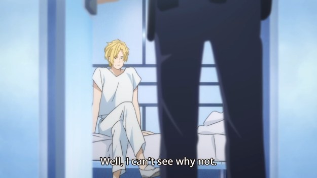 — Even so, Yut-Lung tries to discourage Eiji from escaping, “There’s nowhere for you to go.” Uh, even assuming that Ash really is dead — and he’s not — you know where Eiji could go? Home. Seriously, what kind of dumb argument is Yut-Lung trying to make? Welp, the hero is dead! You may as well surrender your body and soul to us!