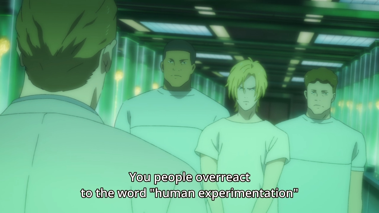 — Even so, Yut-Lung tries to discourage Eiji from escaping, “There’s nowhere for you to go.” Uh, even assuming that Ash really is dead — and he’s not — you know where Eiji could go? Home. Seriously, what kind of dumb argument is Yut-Lung trying to make? Welp, the hero is dead! You may as well surrender your body and soul to us!