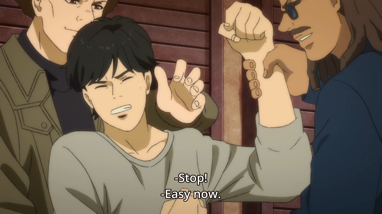— Elsewhere, a couple of guys try to kidnap Eiji. I’m not sure if they belong to Golzine or if they’re just yet more examples of men being relentless and incorrigible sexual predators in this universe. Luckily, Sing comes to Eiji’s rescue…