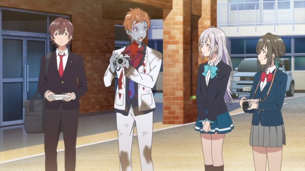 — Sho has to run off at one point in order to photograph the Drama Club. The rest of the gang needs a new model, so of course, they rope the heroine into it. After all, she’s the prettiest character on the show, right?