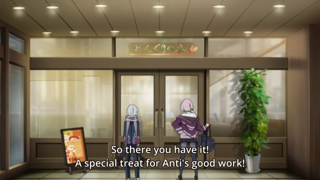 — Akane meets up with Anti to reward the kid with even more food. I imagine a kaiju would have one hell of an appetite. The girl then explains that kaiju don’t have a true form. They just are. Basically, there’s no need to be afraid that you might actually be fighting a real person.