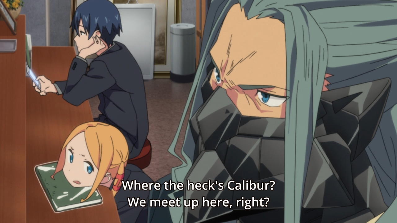 — All of a sudden, Samurai Calibur crashes through the windows and yanks Yuta out of class. Sho quickly follows suit. After all, they have a city to save. But wait, can people see Calibur now?