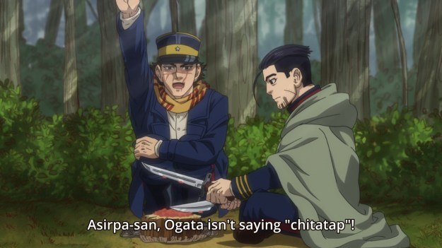 After that, nothing really happens again. Everyone agrees that they just have to go and see Nopperabo, which was the original plan to begin with. In other words, we’re back to square one. I’m also a bit dismayed by Asirpa’s strange fondness for Dick-sensei. Oh well. Here are some amusing moments, I guess: