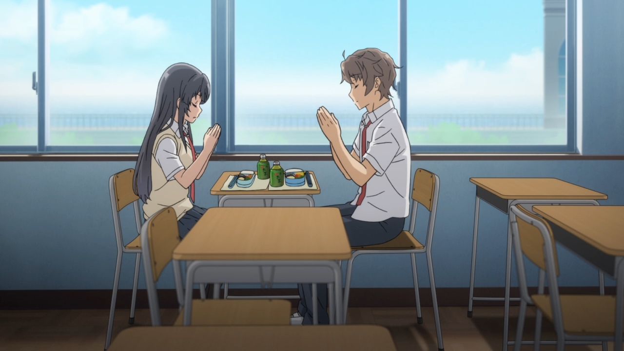 — At lunch, we see Sakuta eating a bento that Mai had made for him. For once, I would love to see it the other way around.