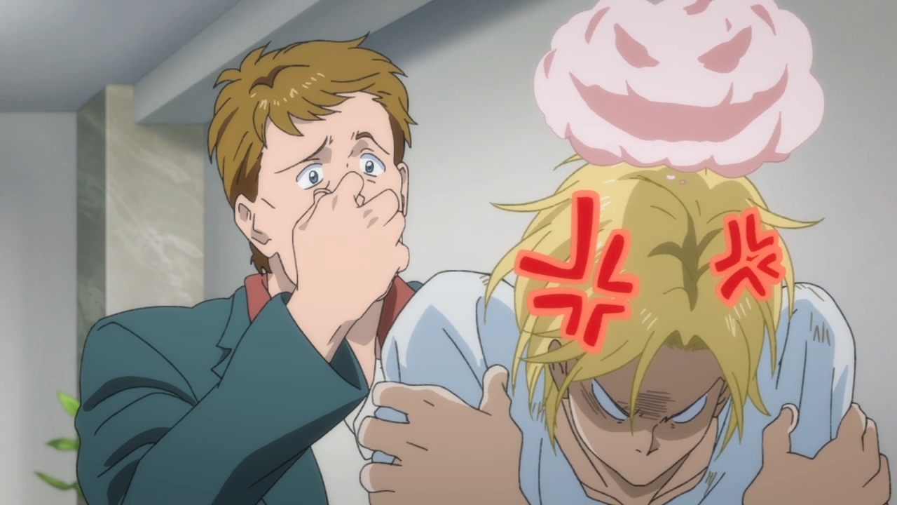— When Ash finally realizes that Max and Shunichi had come for him, he makes this silly face. This is my other beef with Banana Fish: at times, it suddenly wants to be goofy and light-hearted. The show about an abused kid trying to uncover a massive conspiracy involving a dead drugs and pedophiles wants to be goofy and light-hearted.