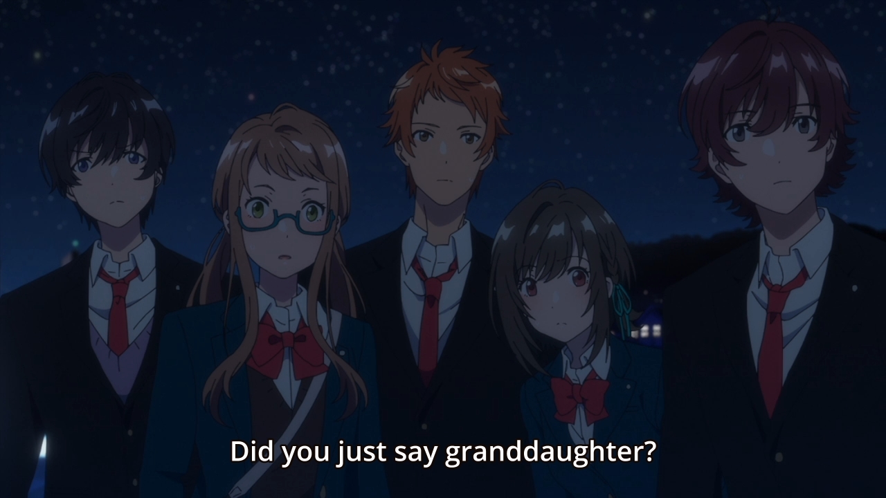 — Cute moment: Kohaku initially wants to know who she ends up marrying, but she ultimately decides against it. Well, we know at least that it isn’t one of the three dorks in the Photography Arts Club. Otherwise, Hitomi would’ve recognized one of them as her gramps… unless, of course, PA Works pulls a dirty twist on us.
