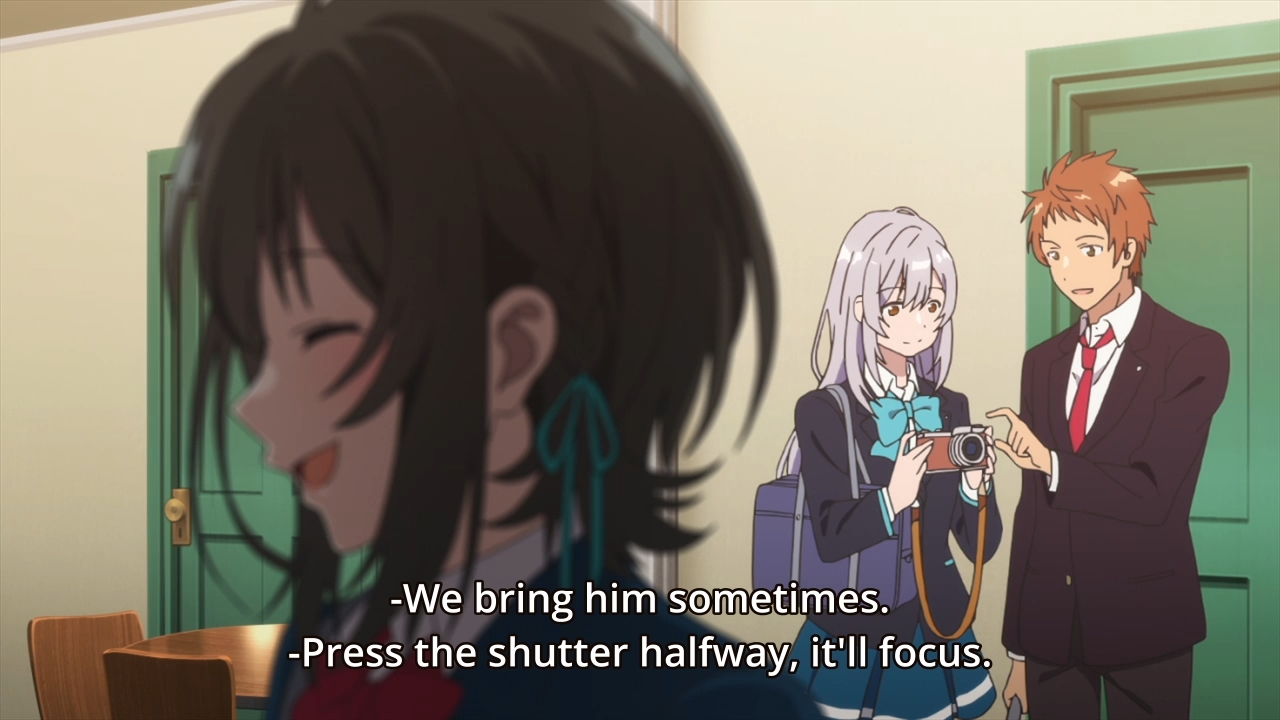 — When Sho lets Hitomi borrow a camera, Asagi mentions how he used to always break it and thus anger his father. So those two are more than likely childhood friends. I wonder if she’s going to feel increasingly uncomfortable as the guy gets to know Hitomi better. After last week’s episode, I feel as though this is where the character drama is headed. I can’t say I’m a big fan of these love polygons, but we’ll see…