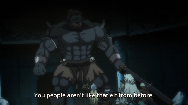 — So the party tries to use their different skills and abilities to take the Ogre down, but unfortunately, he seems to have super fast healing. Elf Girl nails the Ogre right in the eye with an arrow, but he just shakes it off. Goblin Slayer then gets smacked into a pillar. Obviously, he’s not used to fighting anything but goblins. Hell, I wonder if he can even hunt deer.