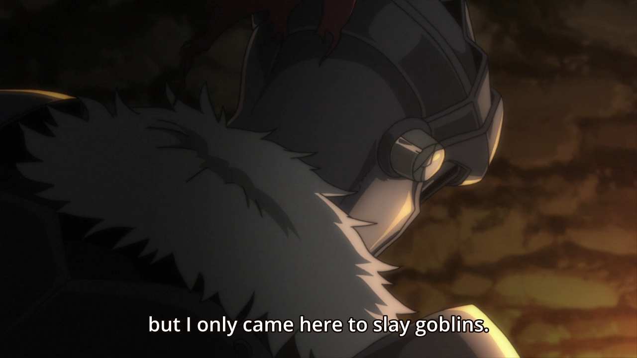 — Finally, after three-and-a-half episodes, our hero will now have to fight a challenging enemy. Hell, it’s not even a goblin this time! As a result, Goblin Slayer sounds disappointed.