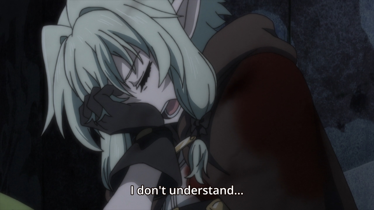 — Goblin Slayer is all about goblin-killing efficiency, so he comes off as harsh and uncaring. He tells Elf Girl that she should just head back if she can’t stomach the situation. Well, he’s usually a solo player, right? So he doesn’t understand party dynamics. He can be blunt with himself, but this sort of attitude can pull down your party’s morale. And if the morale goes down, then obviously their goblin-killing efficiency goes down. But we’ll see. Either Elf Girl toughens up or Goblin Slayer learns to be less of a jerk. Maybe they both have to compromise.