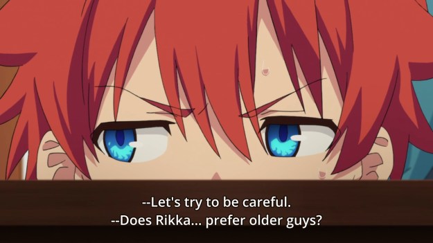 — Still, I find it funny that Yuta is so concerned about his friend meeting up with a bunch of college boys. Does he have feelings for Rikka already? When did that happen? He still hasn’t recovered his memories, but he’s already got a crush on her? I mean, sure, he was worried about her in last week’s episode, but I didn’t know that meant that he liked her.