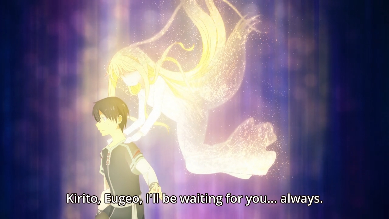 — If this arc really wants to be different, it should try and really mess with our perception of time. Imagine seeing a wizened, 300-year-old Kirito still trying to save Alice or something. Too bad the story will insist on keeping him and Eugeo looking like teenagers.
