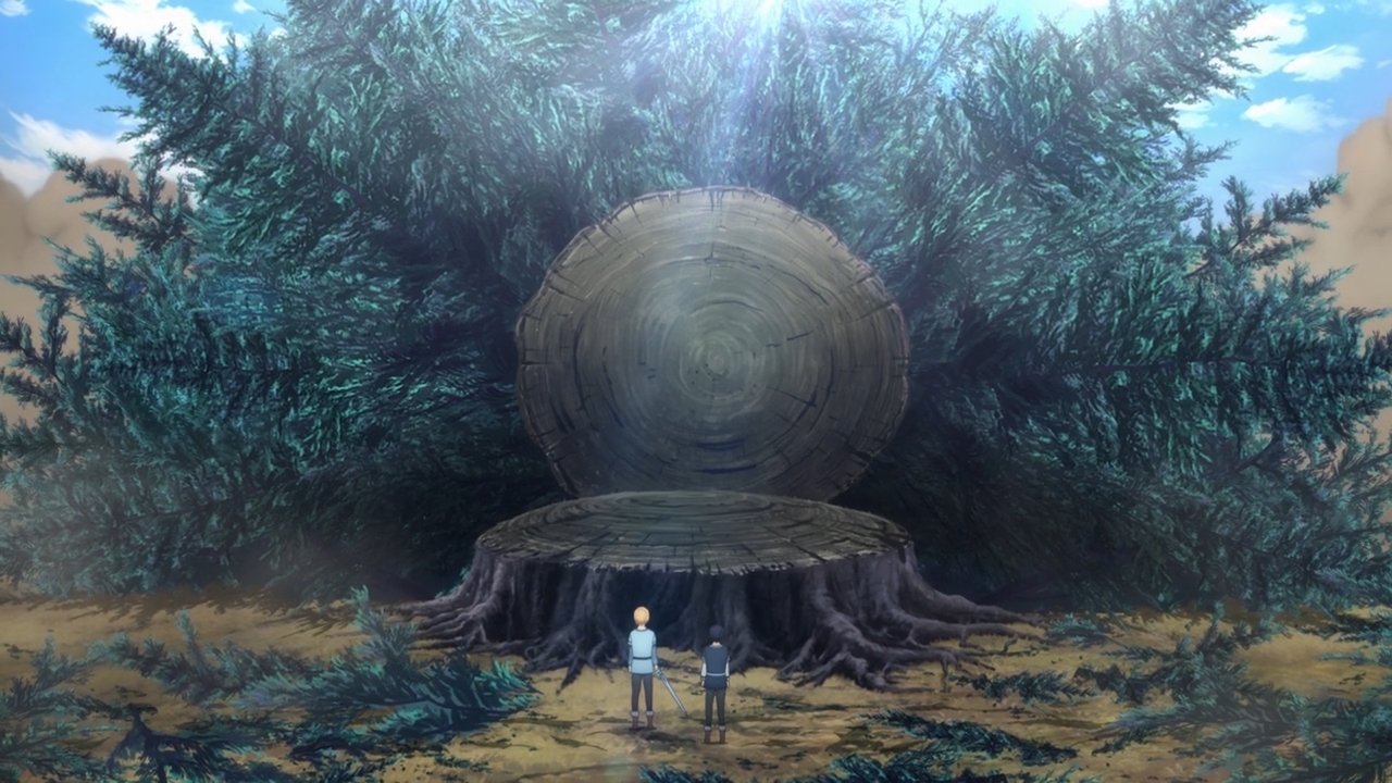 — All of a sudden, we cut to Eugeo hacking away at that tree again. I knew the show couldn’t resist. We should just spend every episode on this dumb tree.