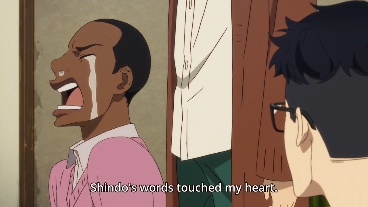 — Naturally, Haiji doesn’t agree. He argues that running isn’t just for the chosen ones, i.e. the elites. For him, the marathon isn’t a lofty dream where you can go, “Oh look, we didn’t make it, but at least we tried! And that’s all that matters!” No, for Haiji, the Hakone Ekiden is the be-all and end-all of this journey, so the amateurs may as well face reality now. Know what you’re up against, and thus what you need to do in order to bridge the gap. Well, that makes sense, but how much of this mentality is fueled by the fact that this is Haiji’s last chance at competing in the marathon? After all, you can’t stay in school forever.