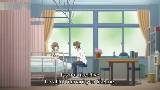 — Y’know what’s weird? The whole Laplace’s demon thing on occurring for half of an episode. As a result, I hope to see more time loops in next week’s episode, and if we don’t, I’m going to be sorely disappointed. ‘Cause really, I started watching this show for the weird stuff like Mai disappearing from the world. And lemme tell ya, Tomoe’s arc has been real short on the weird.