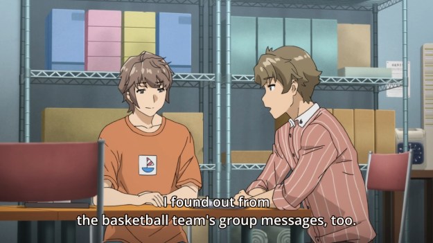 — Anyways, this slow-moving episode keeps trucking along from one Tomoe-related problem to the next. Now, we have Yuuma warning Sakuta about the first-year, because there are salacious rumors going around. It wouldn’t surprise me at all if the guy who got rejected started badmouthing her. He’s super popular, right? So stupid kids would easily believe his word.