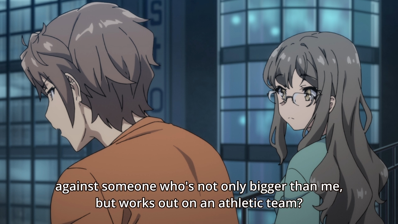 — Saki, Yuuma’s girlfriend, then confronts Sakuta. After all, she still wants him to stay away from her boyfriend. Weird. I mean, if you have a problem with their friendship, maybe talk to your boyfriend about it. But that’s not all. She’s now also super suspicious about Rio. Great. So I’m guessing that when it’s Rio’s turn to tell her story, we’re going to see a lot more of Saki as well, huh? Boy, I can’t wait.