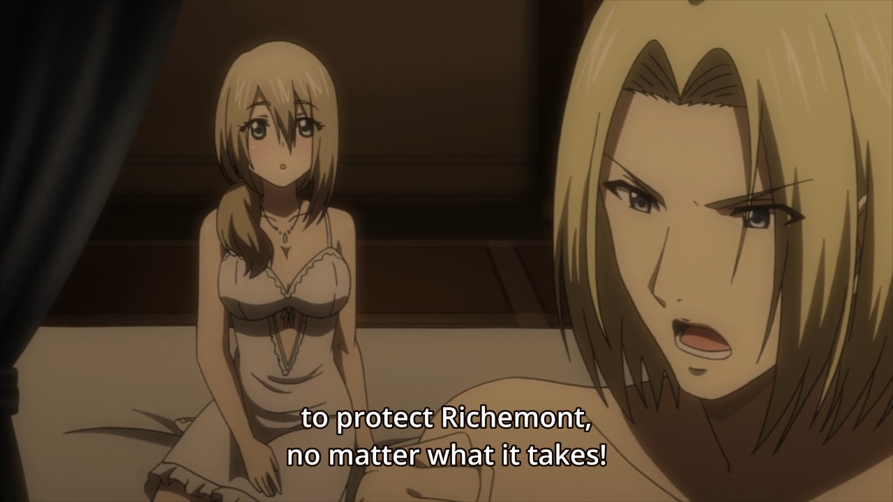 — Richemont bitterly complains about her brother, but some woman — I don’t know her name — defends him. He might not want to ally himself with Charlotte, but he also won’t hand Richemont over to some Lord Bedford. I assume that this is the English dude who also groped Richemont. Anyways, I guess that’s the silver lining. Richemont won’t get her 2,000 troops, but she does have a brother who cares about her.
