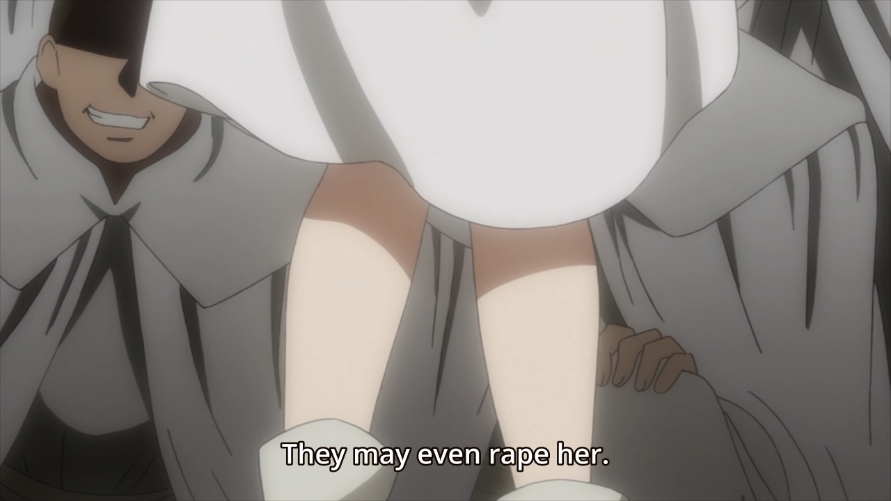 — Afterwards, Richemont goes to a tavern and has her drink spiked for men who feel that Brittany should remain independent. Okay, sure, but why do you gotta tie her up and attempt to rape her? Poor Richemont, man. She just keeps getting groped over and over in this series. Luckily, she does get rescued before the guy goes too far, but you could argue that he already has.