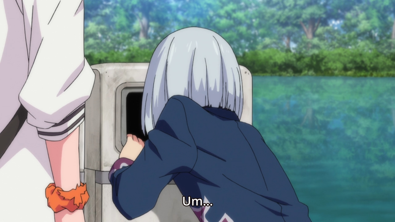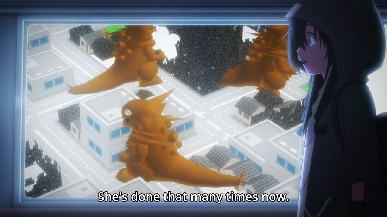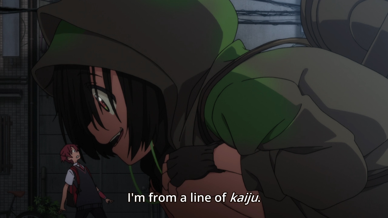 — Anyways, the kaiju girl tells Yuta that despite her appearances, she’s actually older than this city. As such, she’s not one of Akane’s creations. I guess she’s one of anime’s patented “lolis with an old soul” characters.