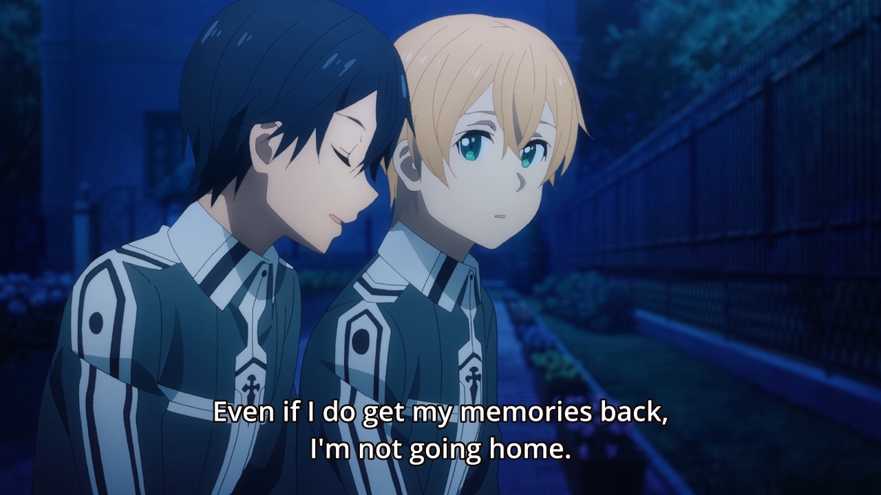 — Don’t write checks you can’t cash, Kirito. At some point, he’ll have to depart from this game and return to Asuna in the real world. I just wonder if he’ll even have the guts to tell Eugeo and Alice the truth about their existence. Oh hey, you guys are just artificial souls for some massive military experiment, but don’t let that break your minds or anything!