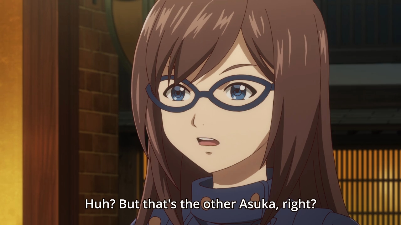 Then towards the end of the day, Asuka tries to sneak Seriousuka home so that she can feed her counterpart, but then her grandmother runs into the two of them. Asuka simply tells everyone that she had met someone who looks exactly like her (and has the same name), and her family actually buys it. Not only that, when pressed for Seriousuka’s last name, Asuka goes, “Siri.” Get it? Siri Asuka? Oh ho, this show is so clever. Anyways, everything is once again hunky-dory except for a brief moment of tension between Asuka and her father. She wants to take over the family business, but the old man thinks she’s too frivolous and carefree. Essentially, he doesn’t trust her to uphold the standards and values that they pride themselves in. Harsh, but it’s probably a fair assessment.