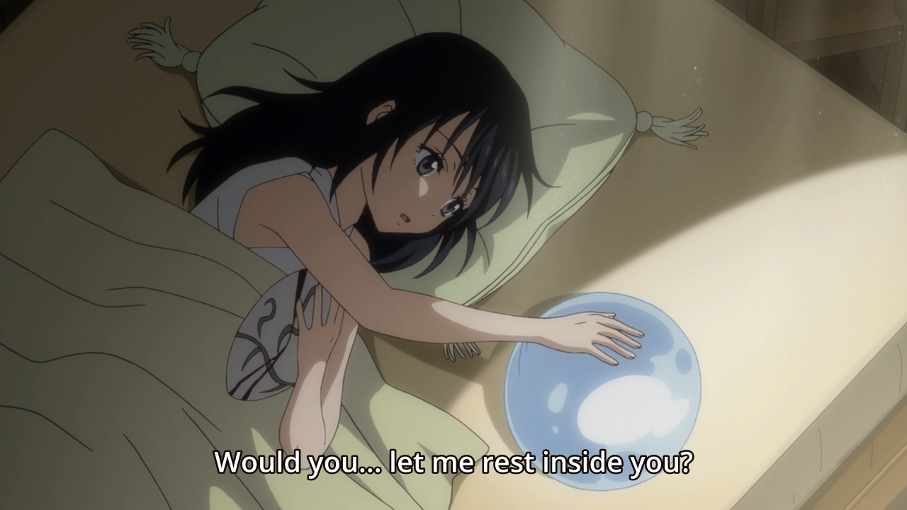 — So right before she bites the dust — oh no, don’t leave us girl who only showed up for a few episodes! — Shizu makes one final request: she would love to get in slime boi’s belly. Just vore this up, baby!