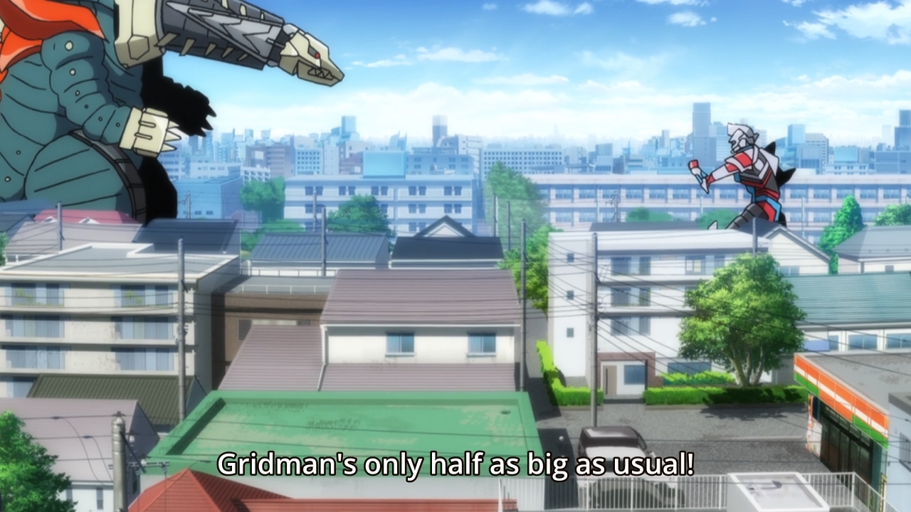— True to form, Akane attacks the city instead. And as previously discussed, Gridman is now smaller and more system efficient! All four Assist Weapons proceed to join the battle, leaving just Rikka and Sho behind. Once again, we have to wonder what these two actually contribute. Well, Yuta needs them, I suppose.