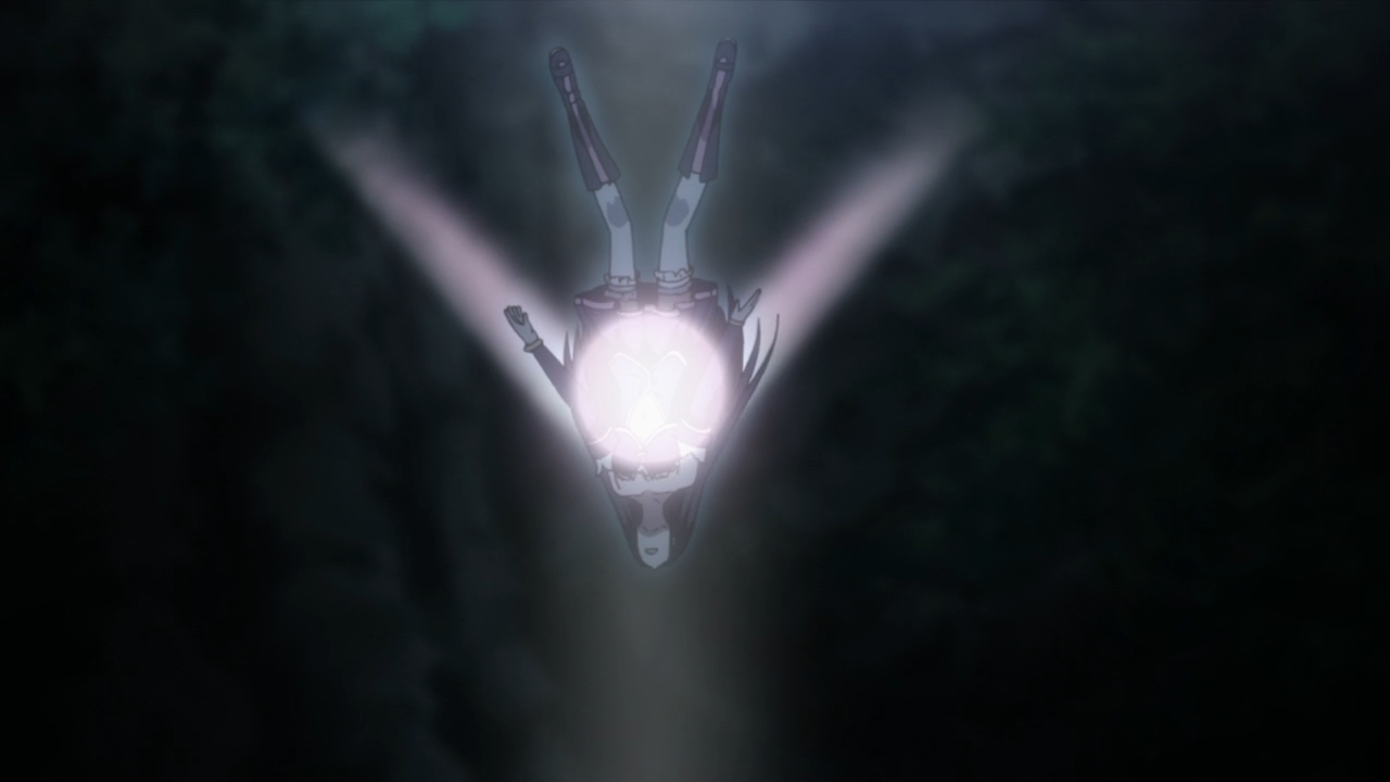 — Also, instead of seeing a gaping wound, we just see… uh, this purple light. I guess this is better than Jeanne’s pitch-black hole.