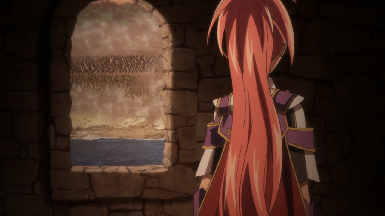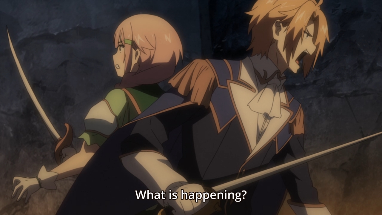 — Well, apparently what had happened was that his sister Richemont had heard about English troops milling about in their territory. As a result, when she went to investigate, she was in the right place at the right time to save her brother. How convenient! What’s even more convenient is that this all happened in the span of a minute of episode time! And now she’s here to save Montmorency!