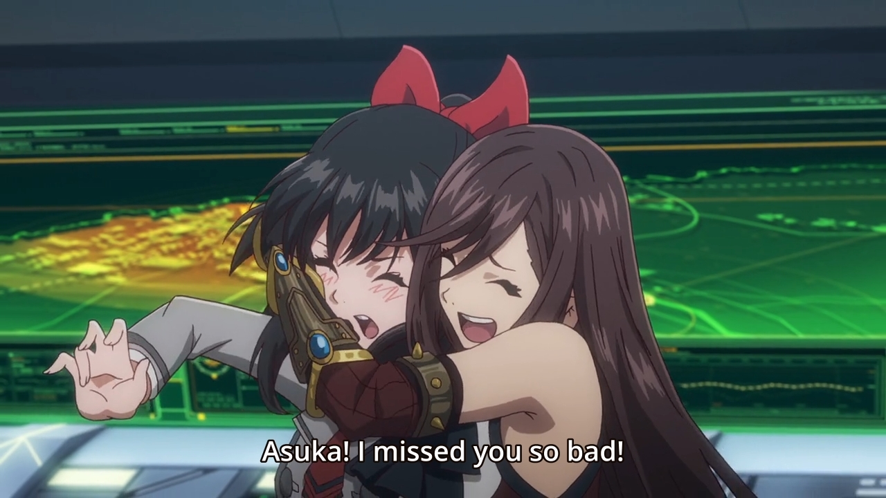 — Seriouska accepts that it’s over for her fragment. All is lost. The base is going down, and the girls have no choice but to escape. She can only hope that one of the trouble-making kids — Takumi is his name — can go with Asuka. He had two other friends, though. I guess they’re just screwed.