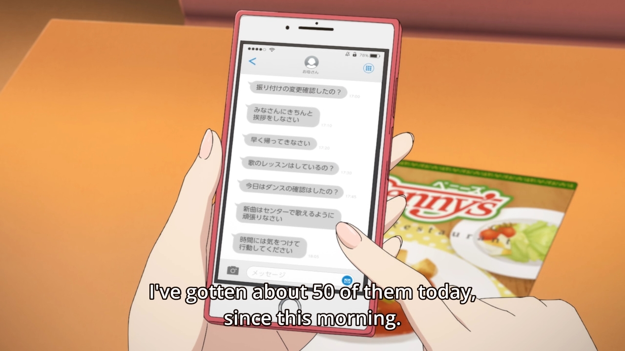— Her half-sister Nodoka is an idol, so I guess show business runs in the family. Seems kinda tiring, no? No one gets to have a normal childhood…