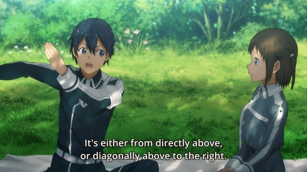 — The episode starts with Eugeo listening to Kirito giving him a dry explanation on how to become stronger. Y’know, believe in yourself. Use the power of your imagination.