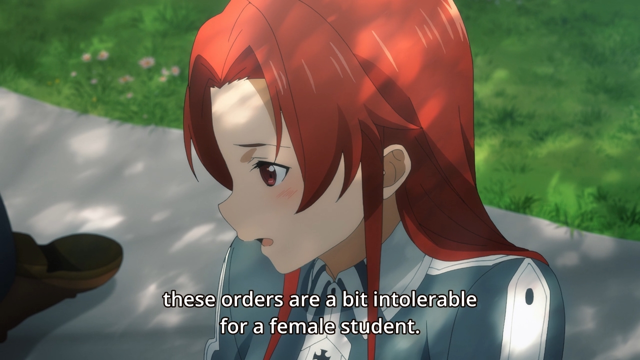 — Anyways, the two girls open up about how one of their friends, a fellow page, is being humiliated by the same bully that had dueled Eugeo just earlier in this episode. What’s up with all these male disciples having female pages? What’s up with the fact that the poor girl can’t just change her disciple? What a stupid goddamn society.