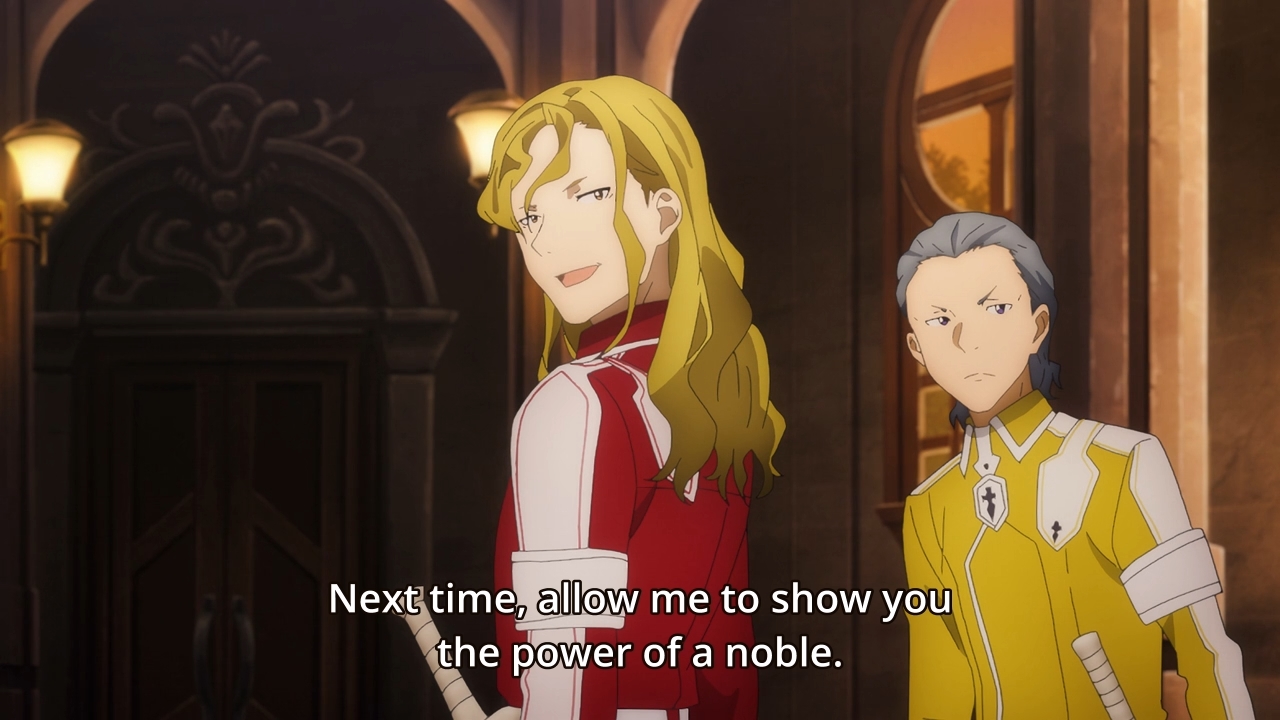 — But the girl has a plan! She wants Eugeo to do so well that he’ll become an aristocrat himself! As a result, she can just marry him! What a plot, you guys. What a plot. What an episode, too. No adventures, no MMO questing, no nothing. We went from chopping down a giant tree for multiple episodes to now a bunch of rubes at an academy.