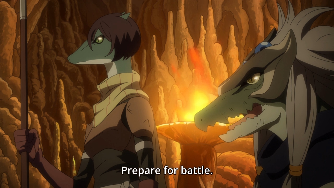 — Rimuru quickly hears that the lizardmen are trying to form an alliance with the goblins. We soon cut to Gabiru whining about how they shouldn’t fear the orcs. His followers think he should become the chieftain instead. I dunno, that hubris might be his downfall. But with that, the episode comes to an end.