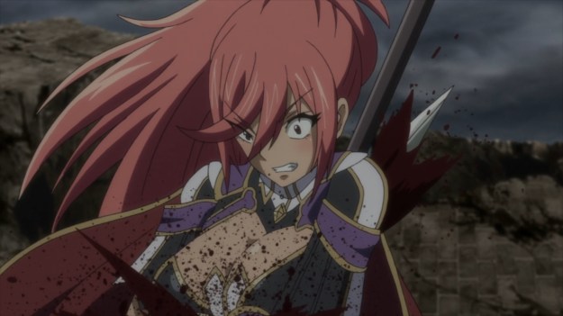 — Demon Montmorency then tries to attack La Hire with his tentacles, but she manages to shoot them all down with her gun. Yes, the king of gods — who might just be an alien from outer space — is being stymied by a gun. In fact, the gun gets him real good, and just like that, the stone gets knocked out of him. But then the tentacles just pick the stone back up and stick it back inside Montmorency’s body. Haha, I don’t even know anymore.