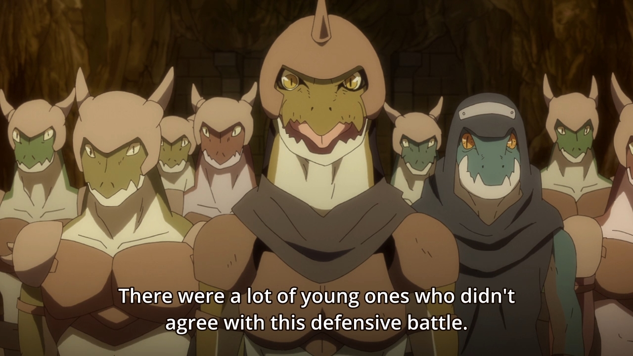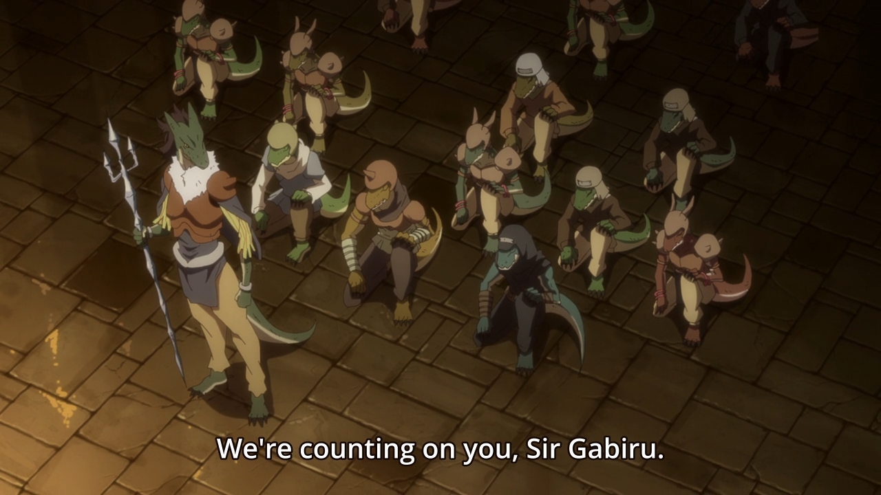 — They then discuss the possibility of allying with the lizardmen, but of course, ignoring that idiot Gabiru at the same time. So far, this episode has mostly featured these characters talking in a meeting room. It’s not exactly exciting.
