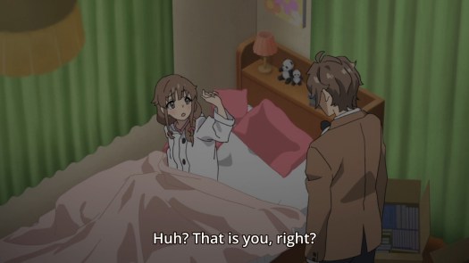 — After seeing a note from her old childhood friend, the girl collapses and ends up in the hospital again. Her old memories might be coming back, but that doesn’t mean she’s equipped to deal with them just yet. As a result, a doctor warns Sakuta that her memories might be affected when she wakes up. It never ends.