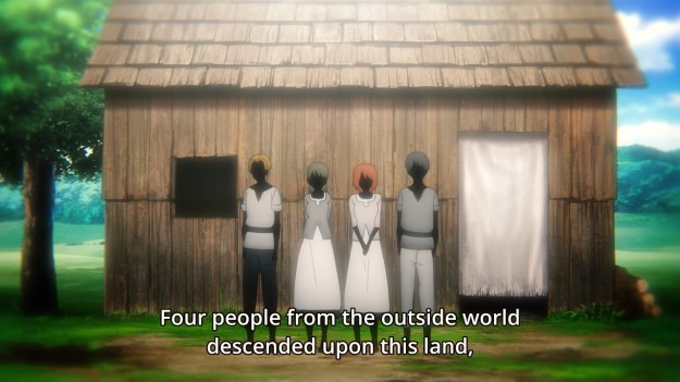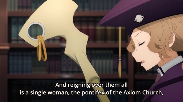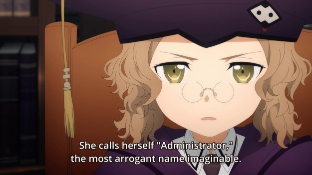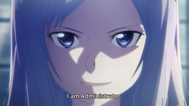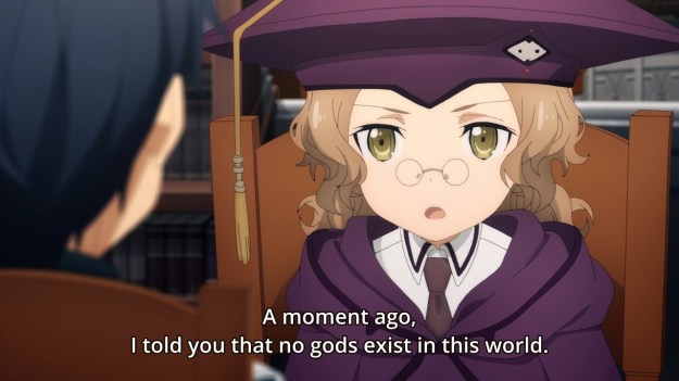 — A magical doorway then allows both boys to escape. They are greeted by some short girl who quickly informs us that although they are currently inside the cathedral, because the entrance has been deleted, no one else can enter without her permission. Alright then.