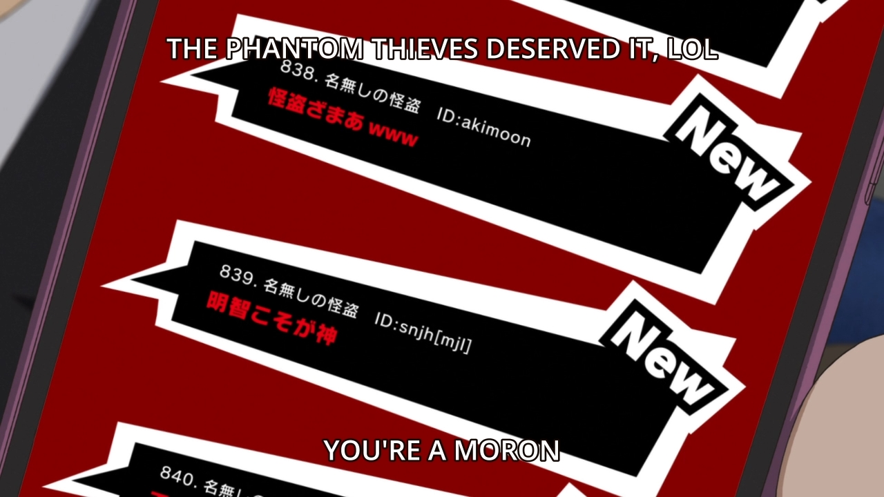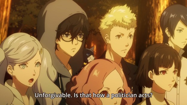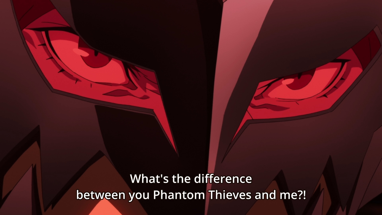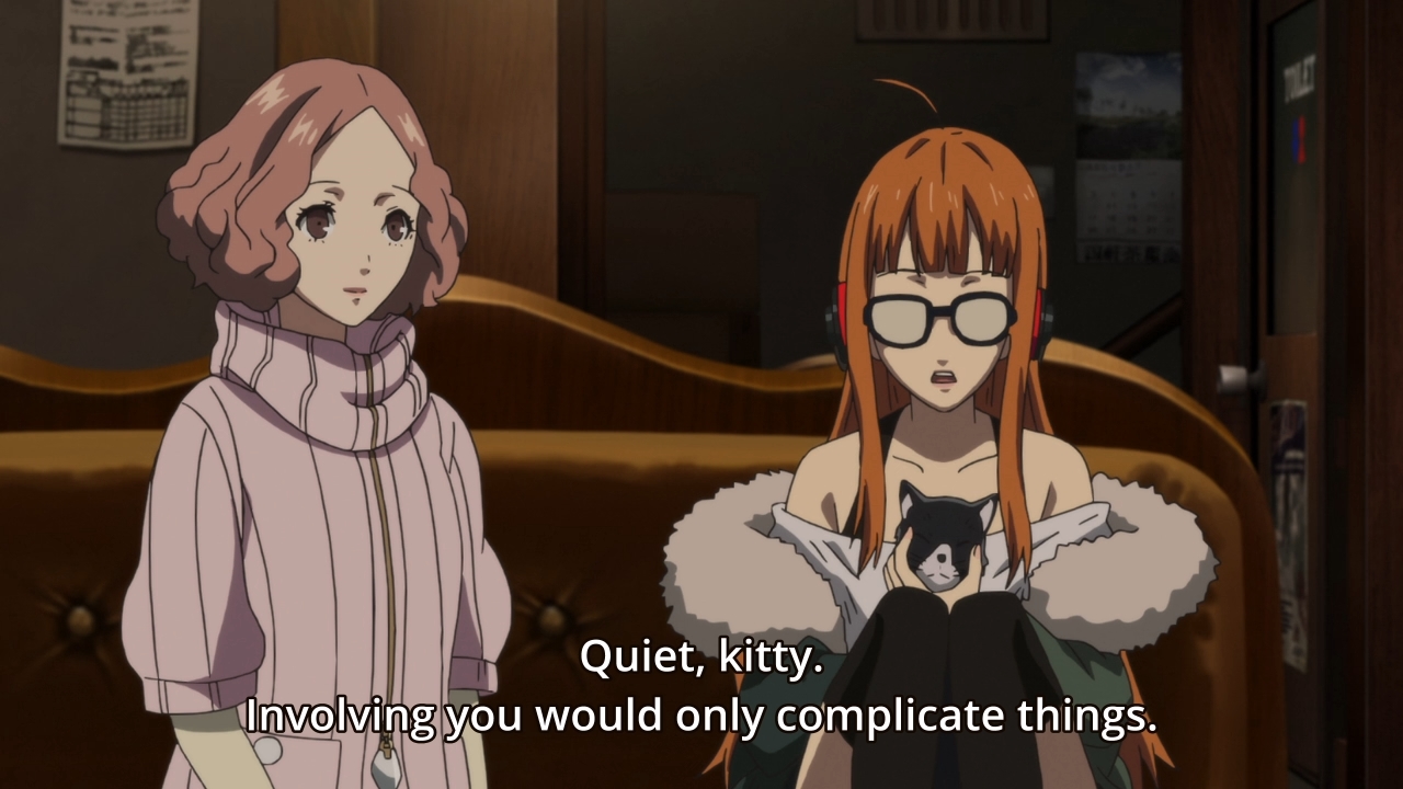 — Interestingly enough, when Morgana tries to pipe up, the characters tell him that explaining his involvement would only overcomplicate things. That’s weird. Why? Because in the game, they straight up tell both Sae and Sojima that not only can Morgana talk, he’s one of the Phantom Thieves. Why leave that out this time?