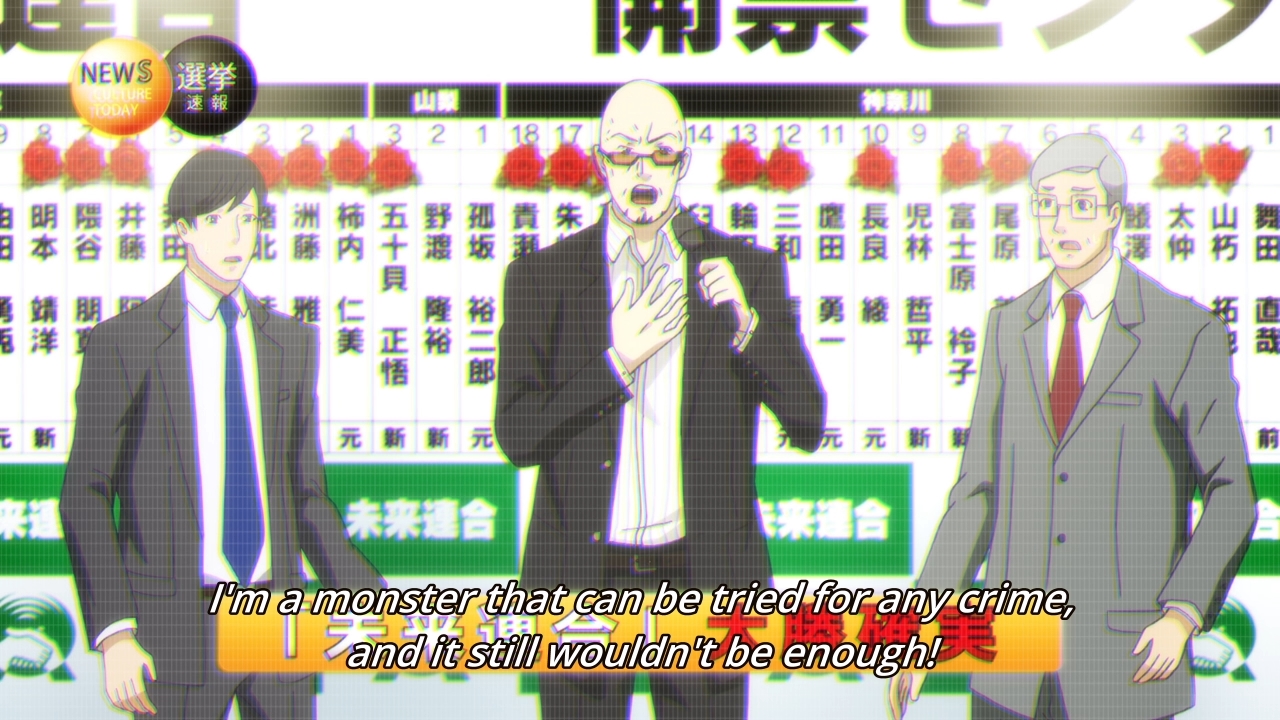 I agree that the rivalry between Akechi and Main character isn’t executed very well. They probably want a relationship like Conan and Phantom Kid in Detective Conan (I am not sure you know that series, but it’s the closest example I could think of.) The thing is, in Detective Conan, the catch-me-if-you-can dynamic is played very well: Conan is there in all Kid’s stealing mission to help with the preparation, he usually got tricked or surprised by the Master Thief’s trick at first but quickly realized the trick and think of a counterattack very fast. It usually ends with Conan, the detective, successful in exposing Kid’s trick and bring the jewelry/treasure back, but he could not capture Kid and sometimes Kid “win” in some other aspects, like achieving his true purpose behind the heist. It does seem formulaic, and Detective Conan is a very formulaic show, but Conan-Kid showdowns have never been boring and you could feel they’re equally smart and cunning, and they both enjoy the game.